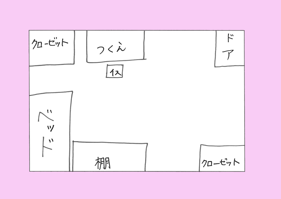 間取りはこんな感じです。テレビはあんまり見ないので、部屋には置いていないです。