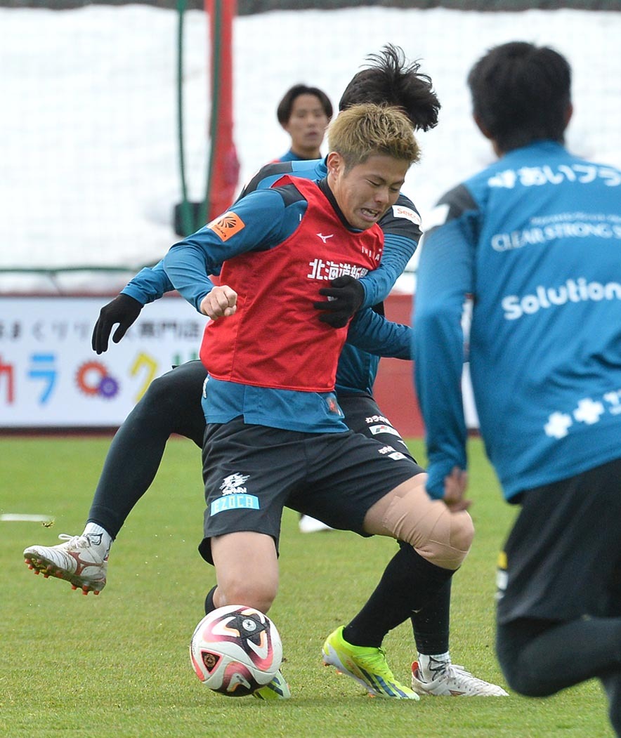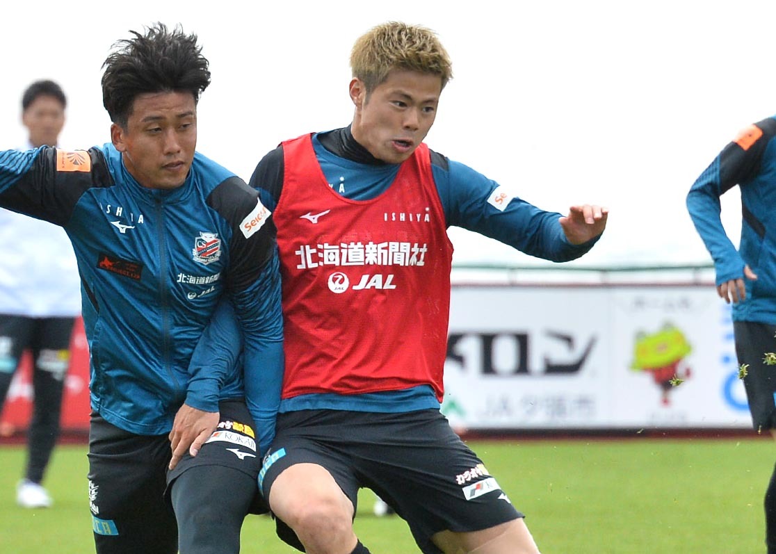 6日にホームG大阪戦(札幌ドーム、午後2時キックオフ)を戦う北海道コンサドーレ札幌。1週間での3試合目という過密日程を考慮し、前節名古屋戦の先発メンバーはボール回しやジョギングなどを、その他のメンバーはパス練習やミニゲームなどを行って調整した。FW鈴木武蔵(30)は契約の関係で今回出場できない。そこで期待されるのがプロ2年目FW大森真吾(23)だ。まだFW登録の選手がゴールを決めていない状況を、大森が打ち砕く。