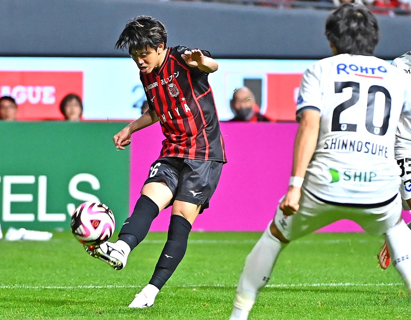両チームが一進一退の攻防を繰り広げていた同28分、敵陣右サイドの高い位置でMF浅野雄也(27)がボールをキープ。長谷川やDF髙尾瑠(27)もペナルティーエリア内まで進入する中で、相手のマークにズレが生じて長谷川がフリーになった。