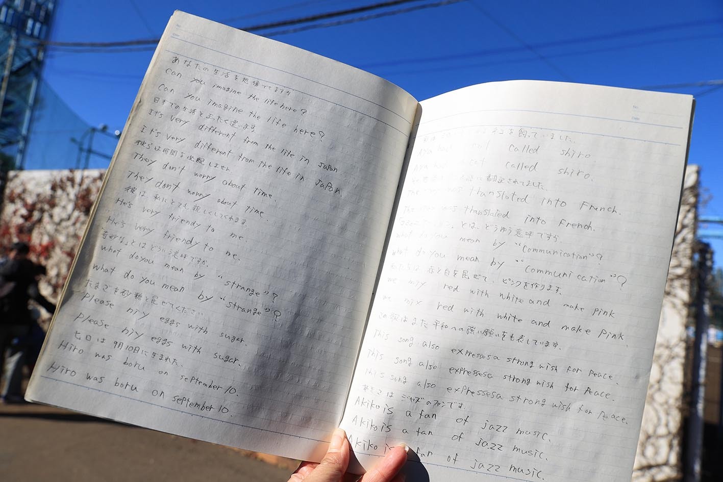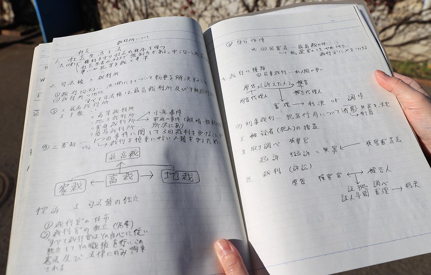 表紙にマジックで記された「所沢市立 向陽中学校 3―5 山﨑福也」。ページを開くと、山崎の実直な性格を現すように、文字がぎっしり書かれていた。