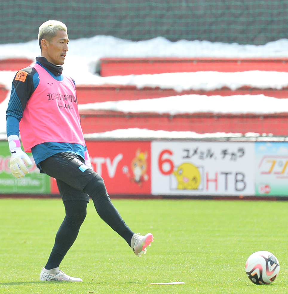 北海道コンサドーレ札幌は13日のアウェー新潟戦(デンカS)に向けたミーティングを行った後、攻撃練習や11対11などで調整した。前節のホームG大阪戦(1〇0)で体を張った守備を見せ、チームの今季初勝利を見事に完封で飾ったGK菅野孝憲(39)。ファン・サポーターに向けて新たなチャレンジをスタートさせた守護神が、さっそく吉報を届けるべく2連勝を誓った。