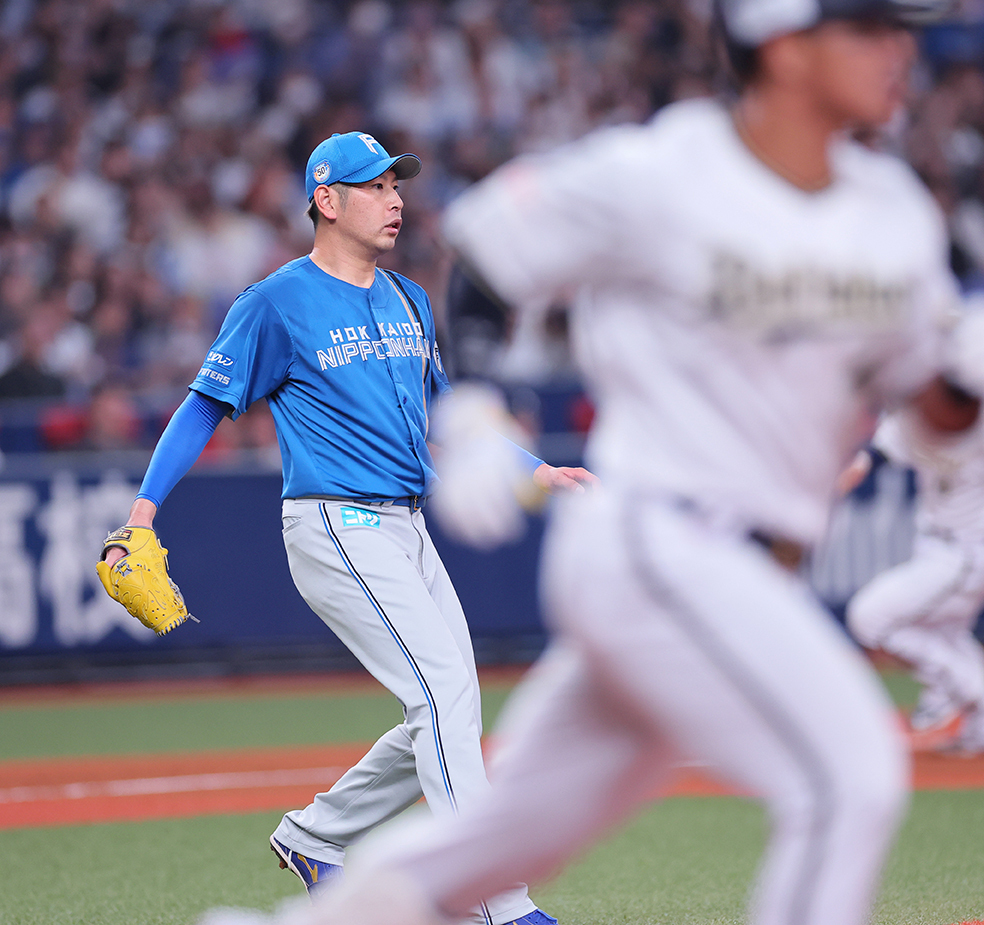 0-5の九回攻撃時には、オリックスにトレード移籍した吉田輝星投手(23)がマウンドへ。1死から途中出場の石井一成内野手(29)が左翼線二塁打を放ち、2死三塁からは伏見寅威捕手(33)が中前適時打を放って意地を見せた。続く郡司裕也捕手(26)からも右前打が飛び出し、2死一、二塁となったところで吉田は守護神・平野佳へと交代。最後はこの日マルチ安打を放っていた五十幡亮汰外野手(25)が打席に立ったが、見逃し三振に倒れた。