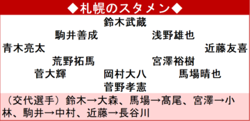 何とか追加点を阻止したい札幌は後半36分、MF小林祐希(31)、DF中村桐耶(23)、MF長谷川竜也(30)を一気投入する3枚代えで交代枠を使い切る。敵地で勝ち点1を死守した。