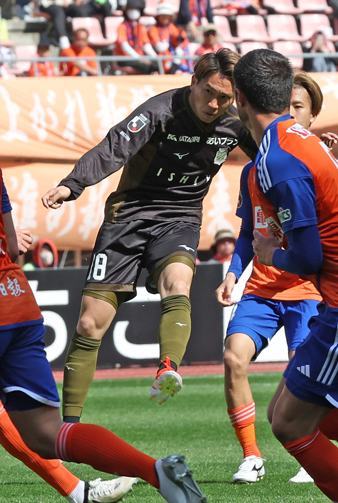 今季は主に右ウイングバックとして起用されていたが、この日は先月16日のホーム町田戦以来となる右シャドーの位置で先発出場。「シャドーでの出場だったので、チャンスがあったら足を振ろうと決めていました」との言葉通り、渾身の力を込めて振り抜いた左足から、待望の今季初ゴールが生まれた。