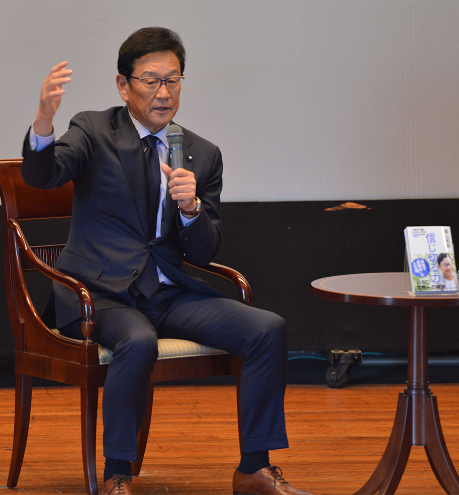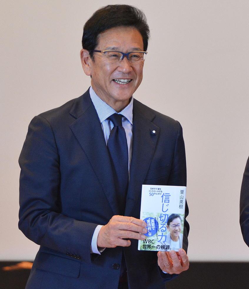 昨年、侍ジャパンを率いてWBC優勝を果たした日本ハムの栗山英樹CBO(チーフ・ベースボール・オフィサー)が16日、著書「信じ切る力 生き方で運をコントロールする50の心がけ」刊行を記念し、東京・文京区の講談社で特別講演会を行った。冒頭では、有隣堂の松信健太郎社長と対談を行い、本、読書の素晴らしさを熱弁。最後には、会場に集まった観客からの質問を受け付け、一つ一つ丁寧に応えた。