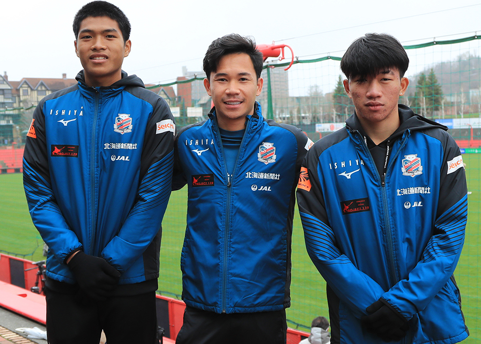 母国から来日した2人は、昨年12月に札幌とミズノがタイ・バンコクで開催した「CONSADOLE ATTACKER SERCH powered by MIZUNO」でタイ全土から集まったユース世代のエリート選手の中から選ばれた将来期待の星。16日に来日し、沼津戦の出発前にスパチョークと対面。17日からアカデミーの練習に参加している。