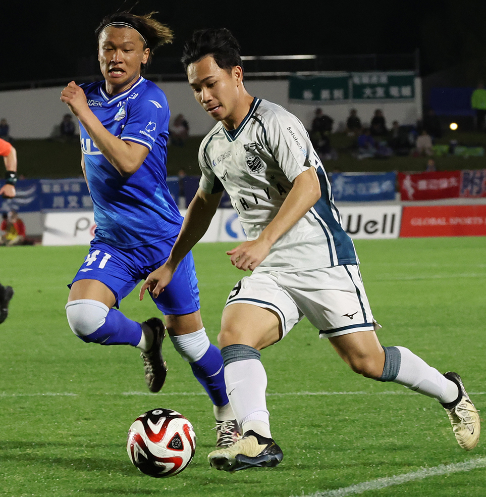 17日の沼津戦の後半10分、ドリブルで駆け上がり、この後勝ち越し点をアシストするスパチョーク(右)