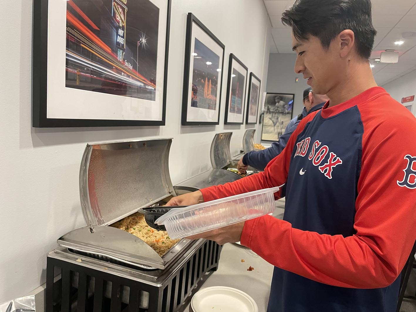 「ナイターの日の朝は出ないですね。夜、シリアルとか自分で持って帰って。ジャンクフード割合は高いです。ハンバーガーとか…」
