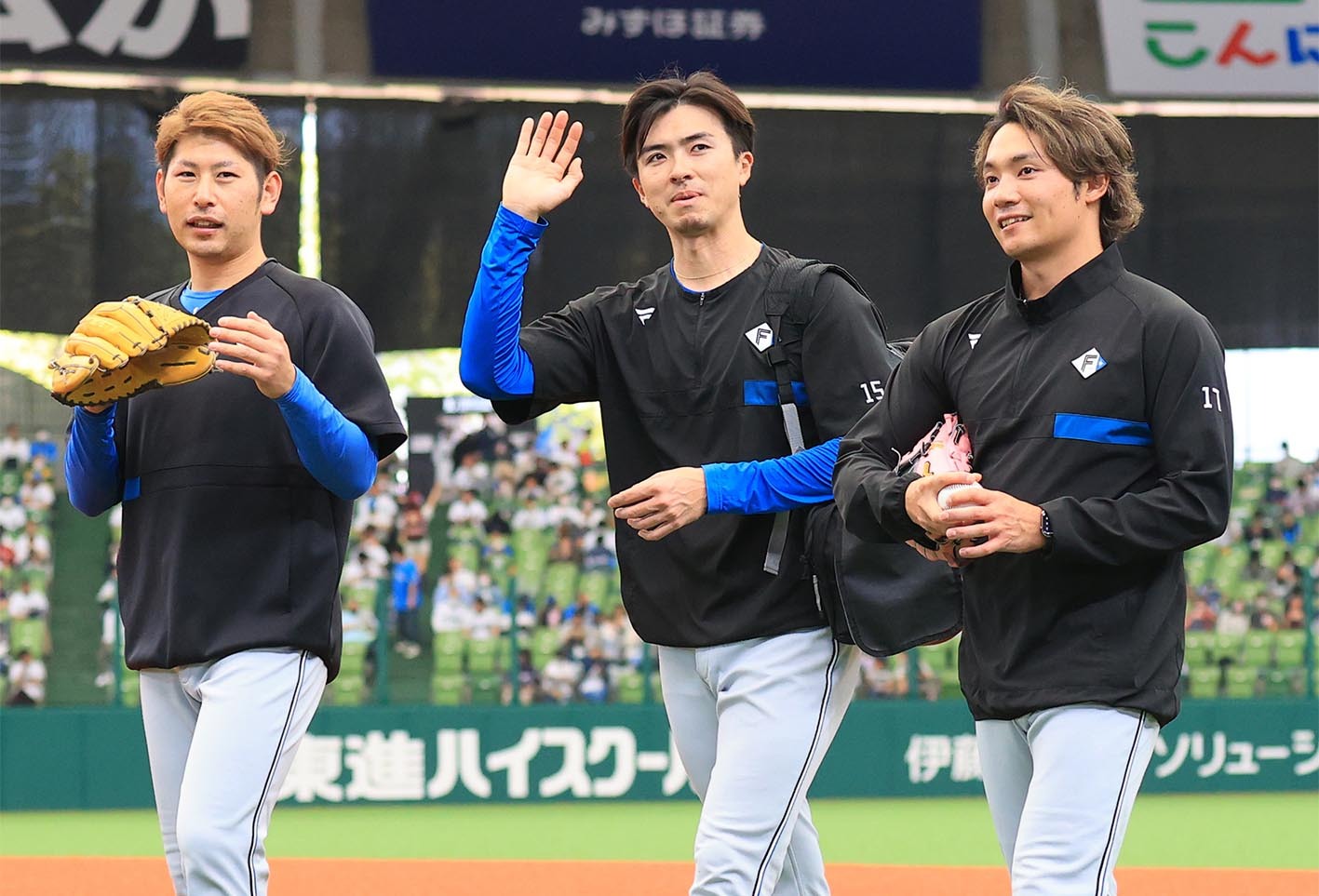 日本ハム時代の(左から)加藤貴、上沢、伊藤