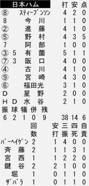 野村が2本塁打で5打点 先発のバーヘイゲンが2回無失点