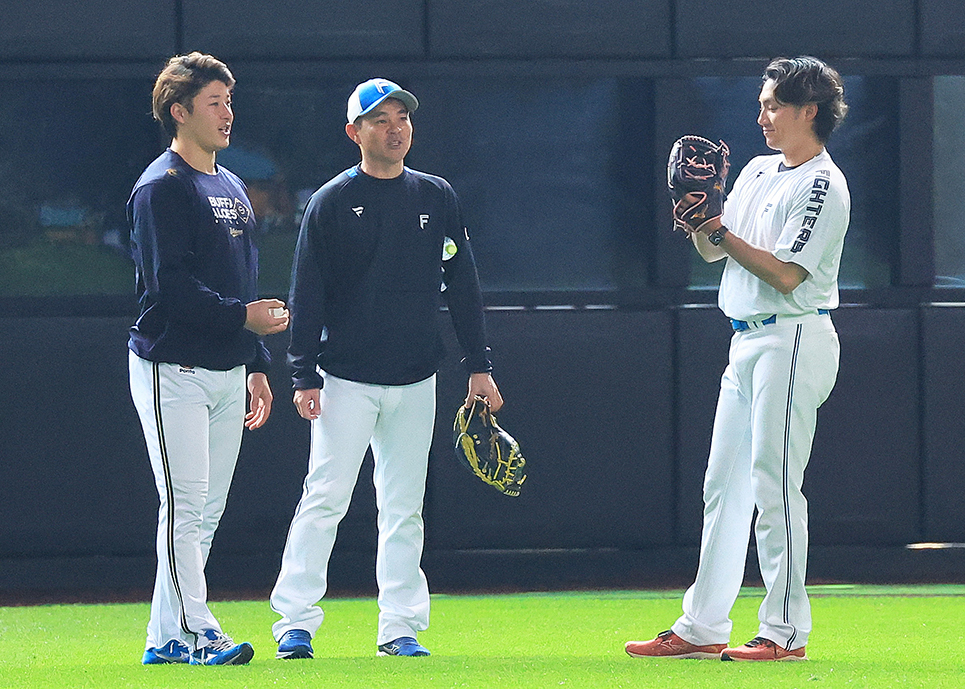 一夜明け、吉田は「エスコン、もう嫌だ」と苦笑い。悔しい登板となったが、課題はハッキリしている。ドラフト同期の万波、田宮には2ストライクと追い込んでから粘られた。「昨日はほどんど、追い込んでからだだった。追い込むまではいっているんですけど、決めにいくとちょっとズレるんですよね」。打開策を求めて、伊藤のもとを訪ねた。