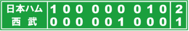 日本ハムは敵地で西武と対戦し、2―1で快勝。8カード連続の初戦勝利を飾った。貯金を「5」とし、新庄体制最多を更新した。