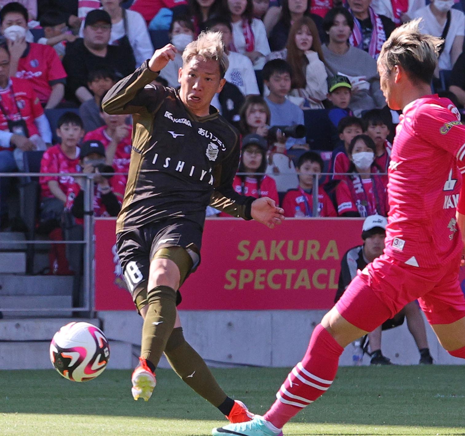 立ち上がりからC大阪ペースで展開してきた試合の流れを、浅野が一気に札幌側へと引き戻した。前半27分、相手DFがクリアしたボールをMFスパチョーク(25)が拾うと「簡単にシュートできるように、できるだけ良いボールを出そうと思いました」と、前線へ走り出した浅野に向かって鋭いスルーパスを放つ。ペナルティーエリア内でボールに追い付いた浅野がダイレクトで左足を振り抜くと、放たれたボールはGK金鎮鉉(36)の右手をかすめてC大阪ゴールへと吸い込まれた。「自分のところで結構フリーになるなと思っていた。チェックからボールが来たので、もうちょっときれいに決めたかったけど、『入れ!』って思いました」。状況を好転させたい札幌にとって、のどから手が出るほど欲しかった先制点を背番号18がゲットした。