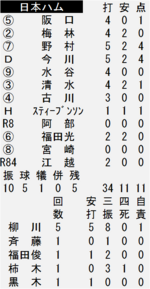 四回は1死満塁から押し出し四球で1点を追加すると、またも野村が走者一掃3点打、今川が3号2ランを放ち、この回一挙6得点を挙げた。