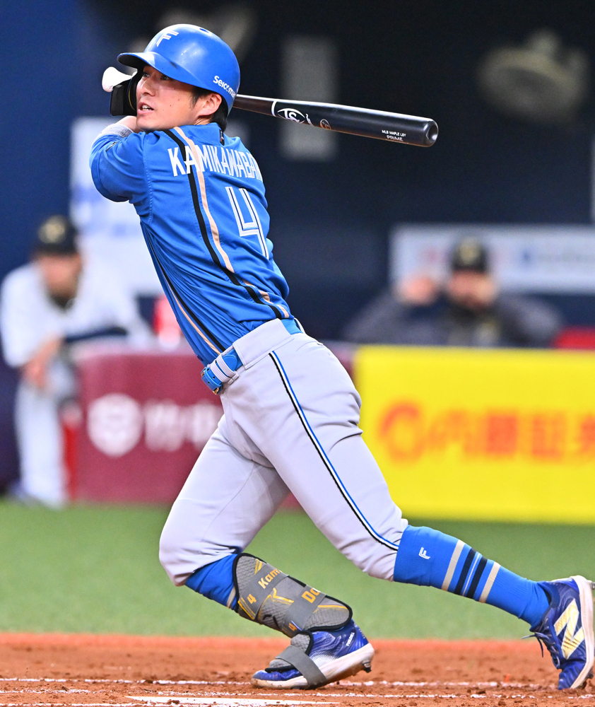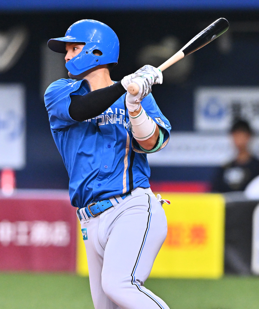 二回先頭の5番・万波中正外野手(24)が中堅への二塁打で出塁。2死後、上川畑大悟内野手(27)の左前適時打で先制した。続く安打で2死一、三塁となり、三塁で先発出場した1番・郡司裕也捕手(26)の適時中前打で1点追加した。