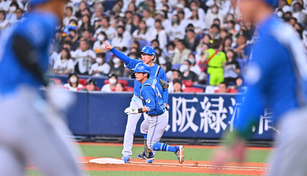 八回に逆襲が始まった。オリックスの3番手・宇田川の代わりばなを攻めた。まず先頭の3番・田宮裕涼捕手(23)が四球で出塁し、盗塁を決めた。無死二塁から4番・一塁のアリエル・マルティネス捕手(27)が右前打を放ち、一、三塁に。マルティネスの代走に中島卓也内野手(33)が送られると、すかさず盗塁を成功させ二、三塁にした。1死はさみ代打の石井一成内野手(29)の内野ゴロを二塁手が悪送球し、3-3に追いつく。7番・松本剛外野手(30)がセーフティースクイズを決め、勝ち越した。2死一、二塁で9番・水野達稀内野手(23)が右越え三塁打を放ち2点追加。リードを3点に広げた。