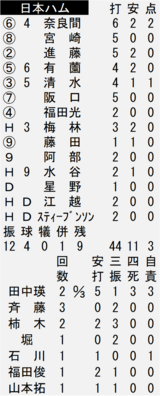 日本ハム2軍は本拠地でDeNAと対戦し、6-6で引き分けた。先発した田中瑛斗投手(24)が二回に3連打と3四球などで4失点。三回も味方の失策と安打で無死一、三塁のピンチを招き、2番手の斉藤伸治投手(25)にマウンドを譲った。併殺打の間に三走がかえり、0-5になった。継投した柿木蓮投手(23)、堀瑞輝投手(25)が無失点でつないだ。