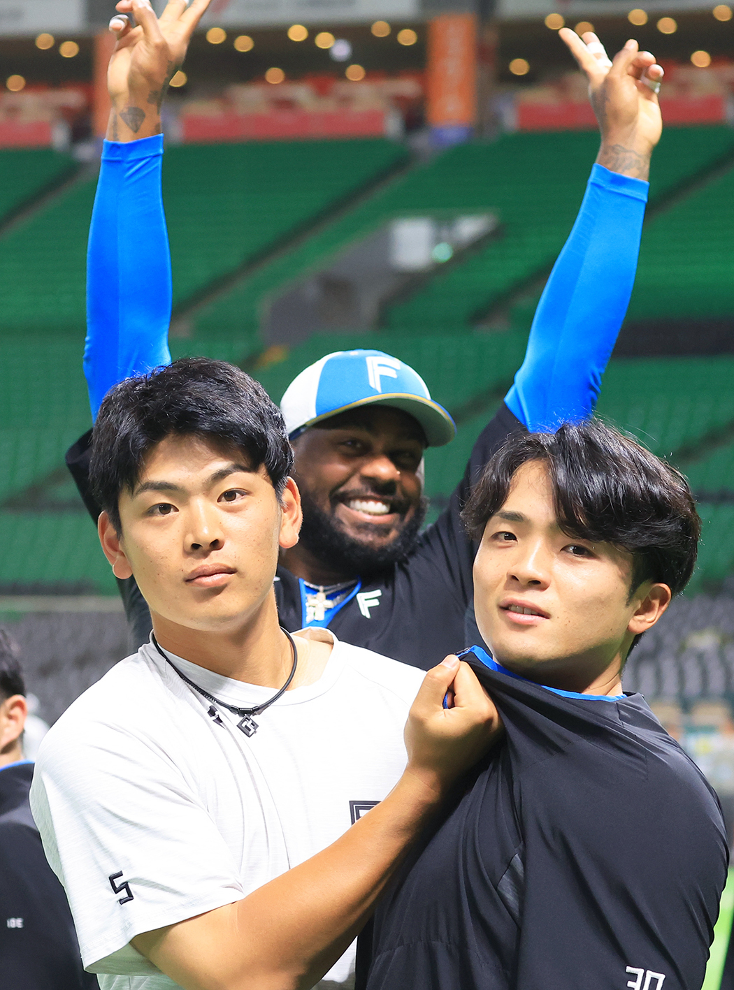 日本ハム選手同士の仲の良さを独自調査する『気になるあの2人』第2回は、皆さんお待ちかね? のコンビが登場です。最近、急接近しているという〝ぐんのむ〟こと郡司裕也捕手(26)と野村佑希内野手(23)に5つの質問をぶつけ、関係性を深掘りしました。3学年違いの2人が仲を深めたきっかけは? 先輩が後輩のとっておきエピソードも紹介してくれました。