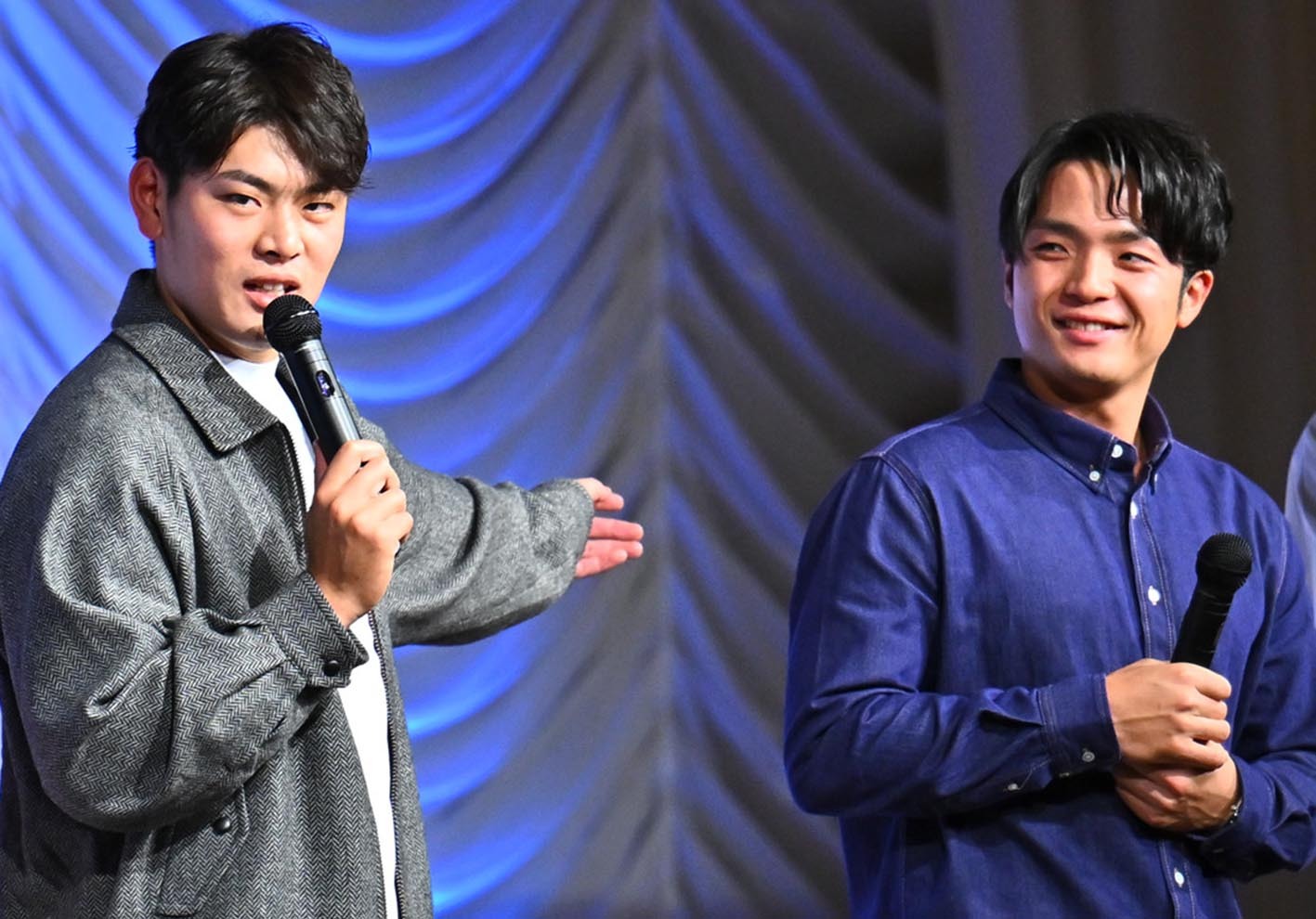 2023年12月のオフイベントで軽快なトークを繰り広げた野村(左)と郡司