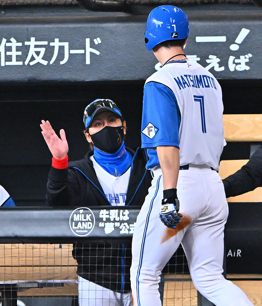 打線は三回、2死二塁で1番の万波中正外野手(24)が左翼線二塁打を放ち、先制に成功した。六回には先頭の2番・松本剛外野手(30)が右前打で出塁し、1死後に二盗、三盗を決めてチャンスを広げた。1死一、三塁となり、5番の田宮裕涼捕手(23)が右犠飛を打ち上げて松本剛を生還させた。七回には再び万波がタイムリーを放ち、ロッテを突き放した。