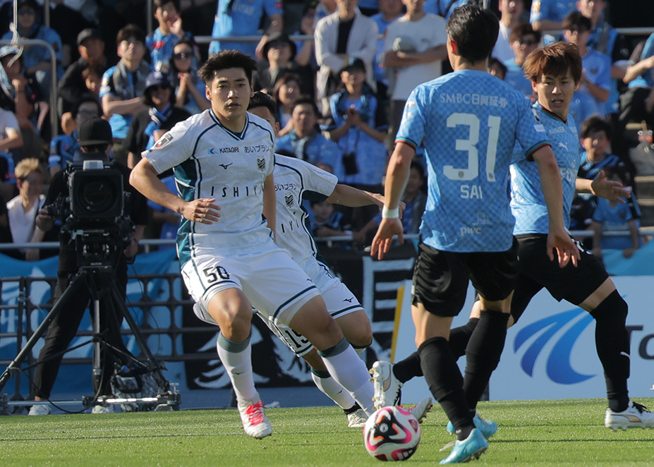 川崎のゴミスは186センチ、90キロと岡村よりもひと回り大きい。「強い選手なのは誰が見ても分かることなので、僕は最初からくっつきすぎないで、トラップ際だとか、接触するタイミング、あとはポジショニングをすごい意識しながらやりました。(交代で入った)山田新選手も、体が強い選手。去年、うちもやられている。そういったところを含めながら、自分も体の強い選手なんで、しっかりポイントを見極めて、負けちゃいけないところと、多少やらしてもいいところは意識しながらやってました」と、決定機をつくらせなかった。