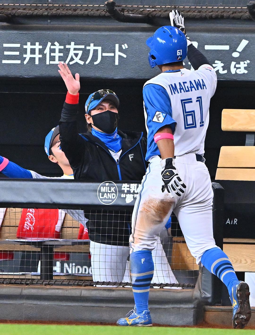 「僕が試合に出て勝ったのは、(今季)昇格してから初めて。やっとチームの勝利に貢献できました。チームの状態が良い時に1番で起用していただいたので、新庄監督に感謝したいです」。心優しいスラッガーが、爽やかな風を吹き込んでいる。