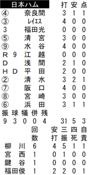 日本ハム2軍は敵地でDeNAと対戦し、3―2で勝利。接戦をモノにし、連敗を「3」で止めた。