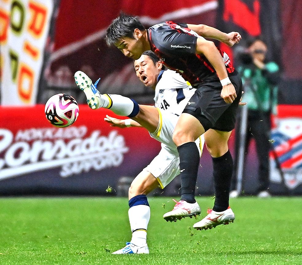 先制点は、左シャドーのMFスパチョーク(25)のスルーパスから生まれた。ペナルティーエリア前にドリブルで攻め込んだ浅野は相手DFをかわし、左足でゴール左上に突き刺した。この後も札幌は攻める姿勢を貫いた。前半29分には右CKに宮澤がヘディングで合わせたが、相手GKに止められた。後半6分、浅野がMF青木亮太(28)からのスルーパスに反応し、シュートを放つも、ゴール左にそれた。後半24分、MF近藤友喜(23)に代わって3バックの左に入ったDF中村桐耶(23)が同29分、左足で放ったシュートはゴールバーに跳ね返された。惜しいシュートが決まらず、追加点は奪えなかったが虎の子1点を守り切った。
