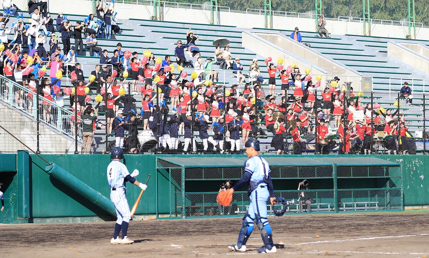 つらい場面は何度もあったが、スタンドの声援に救われた。全国大会に出場する強豪チアリーディング部と、ブラスバンド部総勢78人がチームの背中を押した。高橋制は「3ボールになってから『頑張れ』と言ってくれて、あれが本当に力になって、うまく打ち取れました」とスタンドの応援に感謝した。