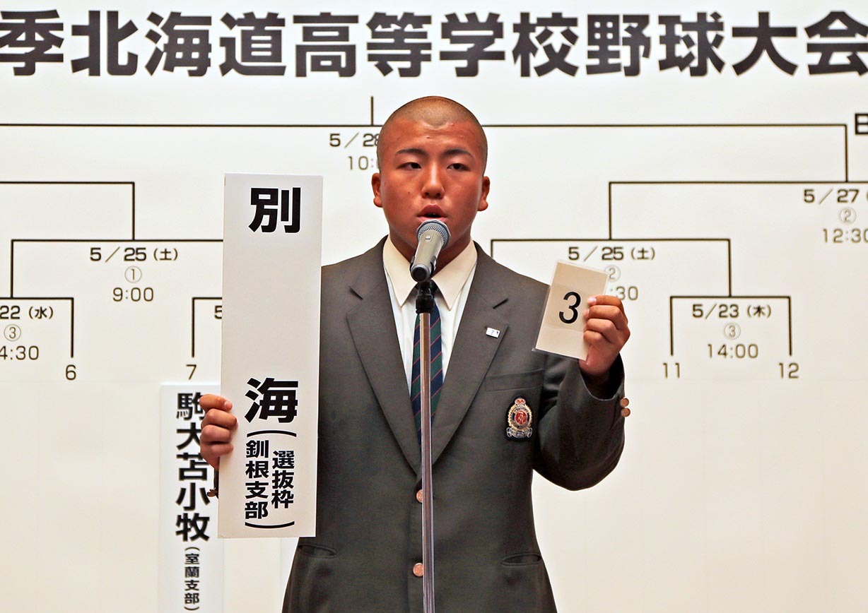 春季全道高校野球大会(5月22日開幕、札幌円山)の組み合わせ抽選会が5月17日に札幌市内で行われた。今春の選抜甲子園に出場し、春季全道は初出場となる別海は、大会第1日の第2試合で昨秋全道8強の札幌国際情報と公立校対決となることが決まった。