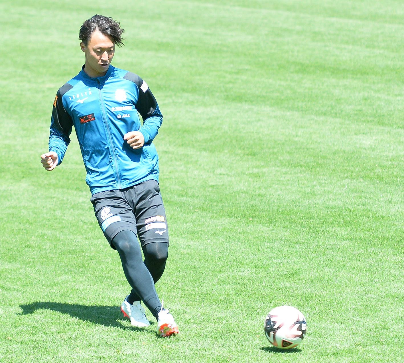 19日のアウェー柏戦に向けて最終調整をしたMF荒野=撮影・工藤友揮