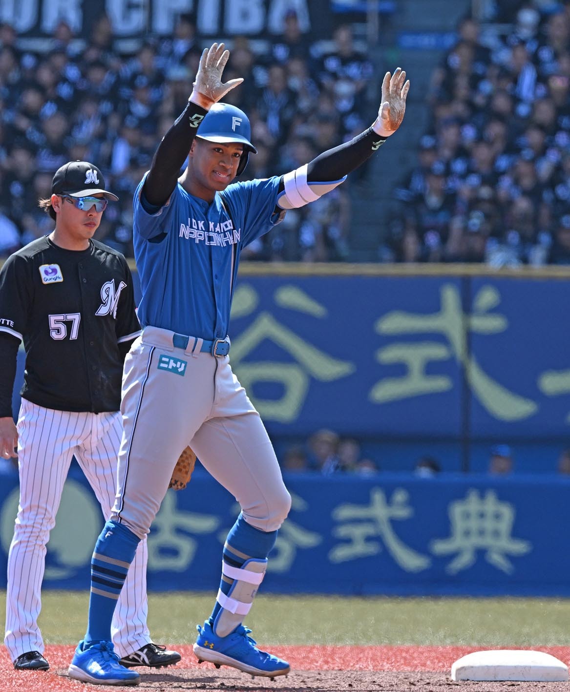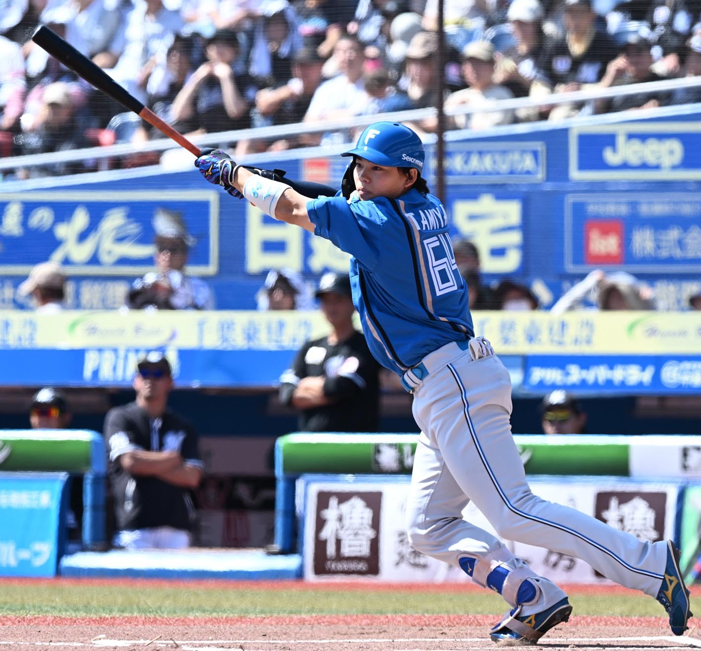 一回、いきなり打線がつながり、大量4点を奪取した。1番の野村佑希内野手(23)から、松本剛外野手(30)、郡司裕也捕手(26)と3連打で満塁とした。ここで4番のアリエル・マルティネス捕手(27)が左犠飛を打ち上げて先制した。さらに5番の万波中正外野手(24)が左翼フェンス直撃の適時二塁打で続いた。仕上げは6番の田宮裕涼捕手(23)。1死二、三塁で三塁強襲の内野安打を放ち、2者を迎え入れた。