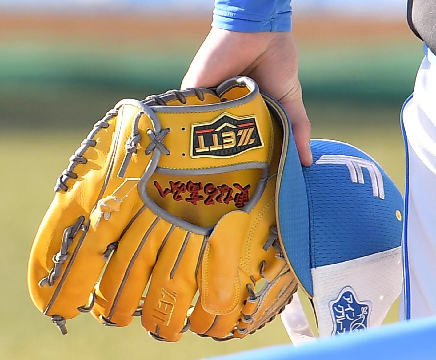 普段からあまり感情は見せず、闘志は内に秘めるタイプ。グラブの内側、平裏と呼ばれる部分には「更なる高みへ」と刺しゅうが入っている。「社会人の時からです。(メーカーの人に)何か入れる?と聞かれたので入れているだけ。特に意味はないです」と、あっけらかんと口にする。