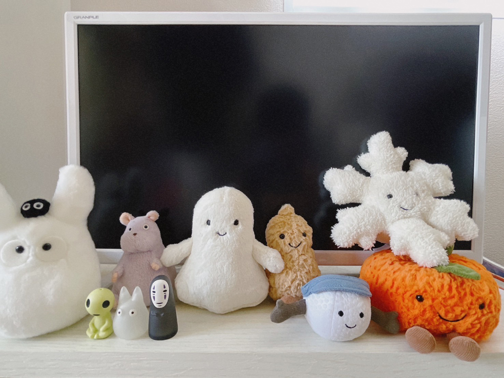 左の5つがジブリのキャラクターです。ネズミは(阿部)葉菜ちゃんからもらいました。その他はファンの方にいただいたものなんですけど、海外のキャラクターです。
