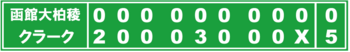 クラークが函館大柏稜に5-0の完封勝利を挙げた。一回は先頭打者の四球、敵失、パスボールなどが重なり無安打ながら2点を先制した。