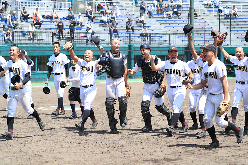 七回コールドで稚内大谷を下し、22年ぶりの春季全道1勝を挙げた遠軽ナイン