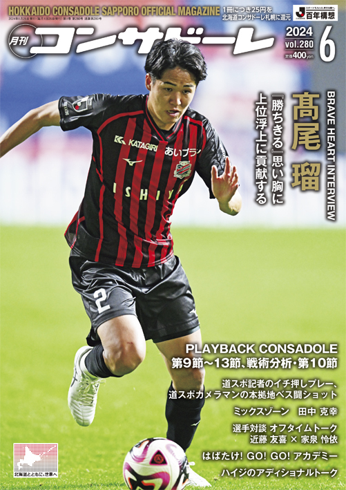 「PLAYBACK CONSADOLE」はJリーグ第9節から第13節と、ルヴァン杯1stラウンド2回戦の詳報を。「ミックスゾーン」はMF田中克幸が登場。シーズン中の連載企画「オフタイムトーク」ではDF家泉怜依とMF近藤友喜が、初めて生活する北海道への思いなどを語り合った。好評連載中の「ハイジのアディショナルトーク」に加え、「はばたけ! GO! GO! アカデミー」など情報満載となっている。