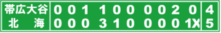 しかし九回に帯広大谷が4安打の固め打ちで2点挙げ、同点に追いついた。延長タイブレークに突入し、表の帯広大谷は得点を挙げられなかったが、裏の北海が投犠と申告敬遠で走者を二、三塁に進め、1番・片岡誠亮中堅手(3年)が左翼へのサヨナラタイムリーを放ち、試合を決めた。