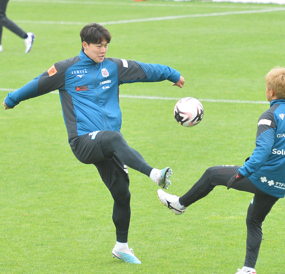 前節、昨年4月15日のアウェー浦和戦以来、約1年1カ月ぶりにリーグ戦での先発出場を果たした金健熙は、前線で躍動した。ポストプレーやラストパスなどで何度もチャンスを演出すると、後半2分にはMF青木亮太(28)の左サイドからのクロスに反応して、相手DFを引き連れながらニアサイドに飛び込んだ。「すごくいいクロスだったけど、ちょっと勢いがあって、無回転気味に来たので」と振り返るように、わずかに頭に合わせることはできなかったものの、ファーサイドにいた相手DFがトラップミスしたボールに、MF駒井善成(31)が反応してゴールをゲット。結果的につぶれ役として、同点ゴールを〝アシスト〟した。