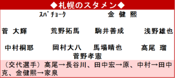 札幌は同17分に一気に4枚替え。ルヴァン杯でも先発したDF中村桐耶(23)、髙尾瑠(27)、田中宏と、前線の金健熙を下げ、MF田中克幸(22)、原康介(18)、長谷川竜也(30)、DF家泉怜依(24)を投入した。