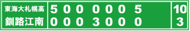 両校2イニング無得点が続いた後の七回。東海大札幌打線から再び快音が連発した。2死一塁から4番のマーティン・アンドレ・キャメロン二塁手(3年)の左翼線適時二塁打をゴングに、長短5連打で5得点。守備でも五回から3番手で登板した矢吹太寛投手(2年)が3者連続四球を出しながら七回まで3イニング無安打無失点投球を続け、釧路江南の反撃を許さなかった。
