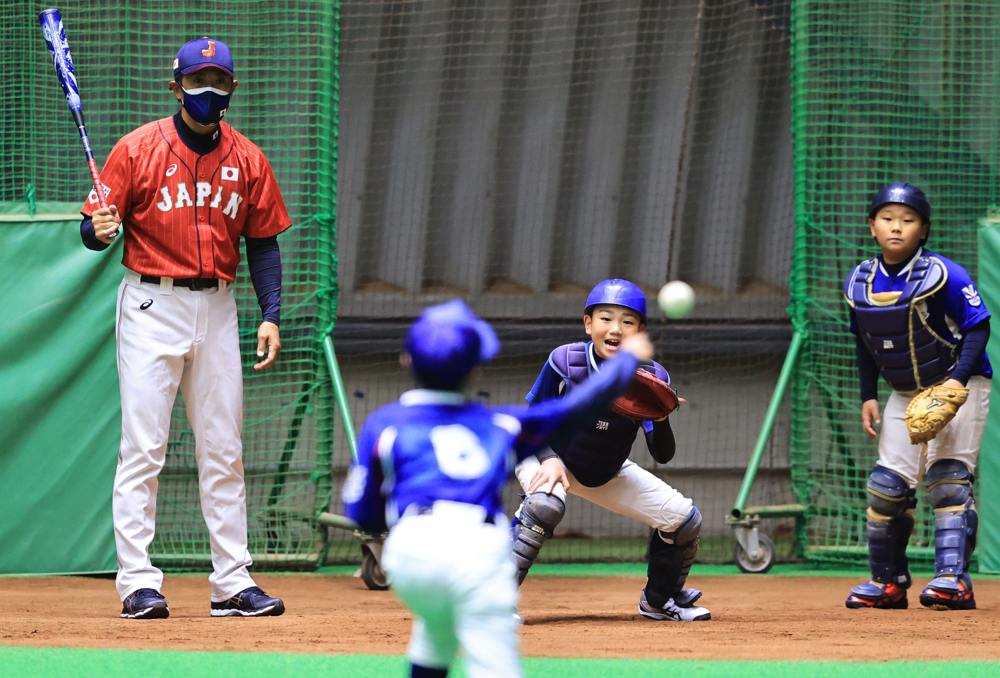 五輪前、たくさんの応援メッセージを受け取った。今回はお礼を兼ねて各地で開催する交流イベントの第1弾。少年野球の豊平カージナルスに所属する児童18人と対面し、ノックやスイング指導を行った。サイン色紙をプレゼントし、記念撮影に応じるなど、ふれ合いの時間を満喫した。