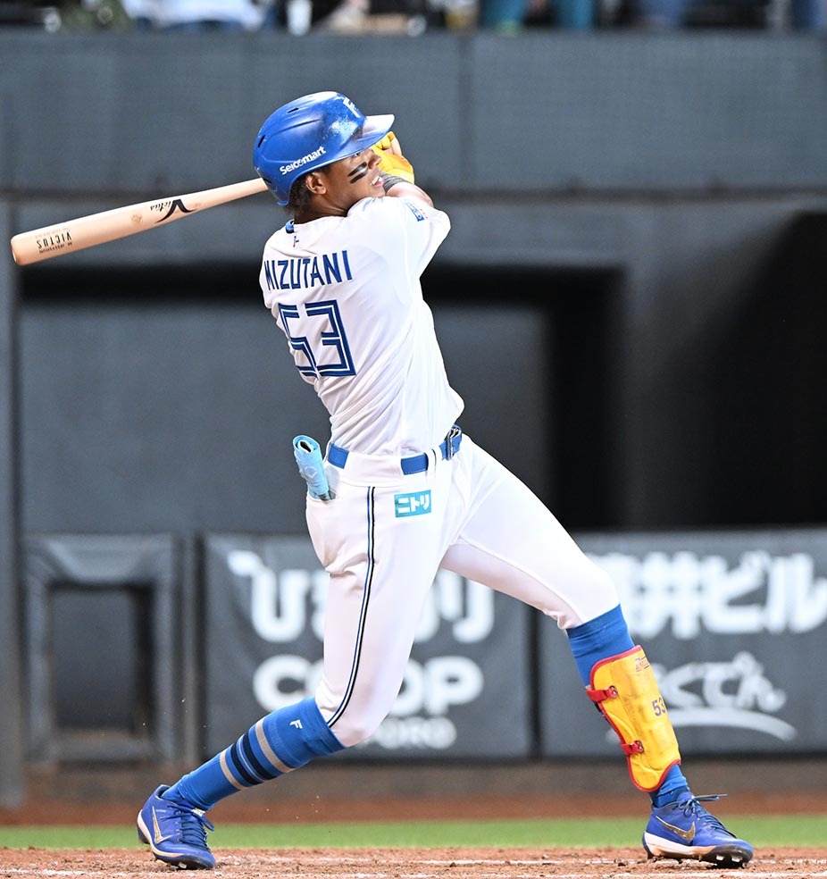 14安打9得点で打ち勝った。二回、水野達稀内野手(23)の適時三塁打で先制。野村佑希内野手(23)もタイムリーを放ち、2―0とした。2―1の三回には一挙4得点。郡司裕也捕手(26)が適時打をマークした後、1死一、二塁で田宮裕涼捕手(23)が2号3ランを右翼スタンドに叩き込んだ。四回には水谷瞬外野手(23)にプロ1号となる2ランが飛び出した。五回には水野がこの日2本目となる適時三塁打を記録した。