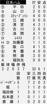 先発したドリュー・バーヘイゲン投手(33)は5回投げ7安打4失点(自責2)で2敗目。二回1死一、三塁の場面で二ゴロの間に同点に追いつかれると、四回にロッテ先頭打者の上田希由翔内野手に1号ソロを浴び、勝ち越された。自身の暴投で3点目を献上し、さらに適時打を許し、1-4となった。3番手の福田俊投手(27)が七回に暴投で5点目を奪われた。