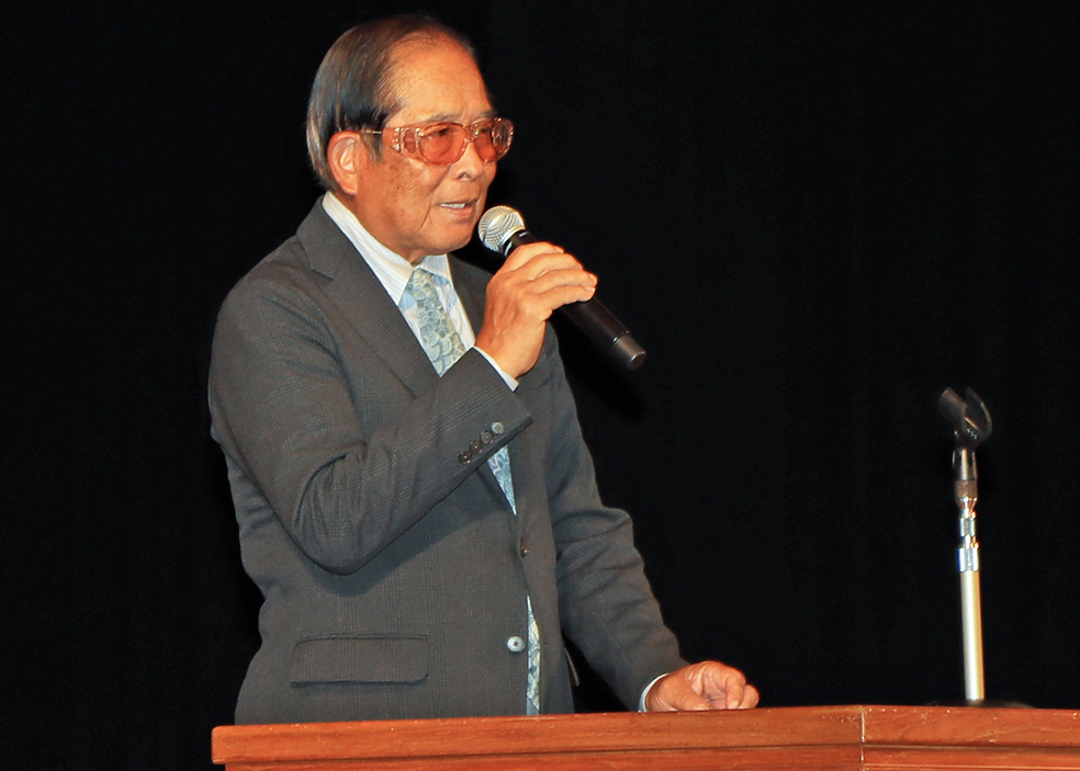 大昭和製紙北海道の選手として1974年の都市対抗で北海道勢初優勝した我喜屋優元監督が白老町に凱旋して講演会を行った=撮影・西川薫