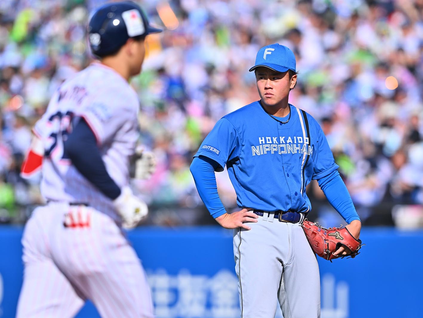 さらに三回には万波中正外野手(24)の左越え7号ソロで先制してもらったが、落とし穴は四回に待っていた。先頭の西川に内野安打での出塁を許すと送りバントで1死二塁。3番・長岡は左飛に打ち取ったが、村上には四球を出して2死一、二塁。続く5番・サンタナにカウント2-0から149キロの直球を痛打され、逆転3ランを浴びた。