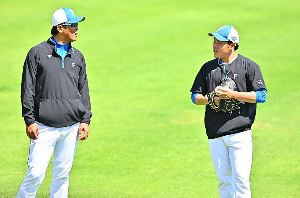先日、鎌ケ谷で行われた2軍戦を取材していると、試合前にこんなシーンを見かけた。外野でキャッチボールをしていた根本に、稲葉2軍監督が笑顔で近づく。声をかけられた左腕の表情がみるみる明るくなっていった。