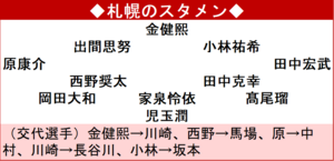 札幌はシーズン開幕後の3月下旬に途中加入したGK児玉が移籍後初出場初先発。その児玉が、持ち味とする足元の技術をいきなり披露したのが、前半9分の先制の場面だ。自陣の高い位置でボールを持つと、右サイドのスペースに走り込んだMF田中宏武にピンポイントでロングフィードを通す。ボールを受けた田中宏からのクロスに、ゴール前へ走り込んだFW金健熙が合わせて栃木Cゴールへとたたき込み、今季公式戦初ゴールをゲット。児玉が自ら起点となって先制点を演出した。