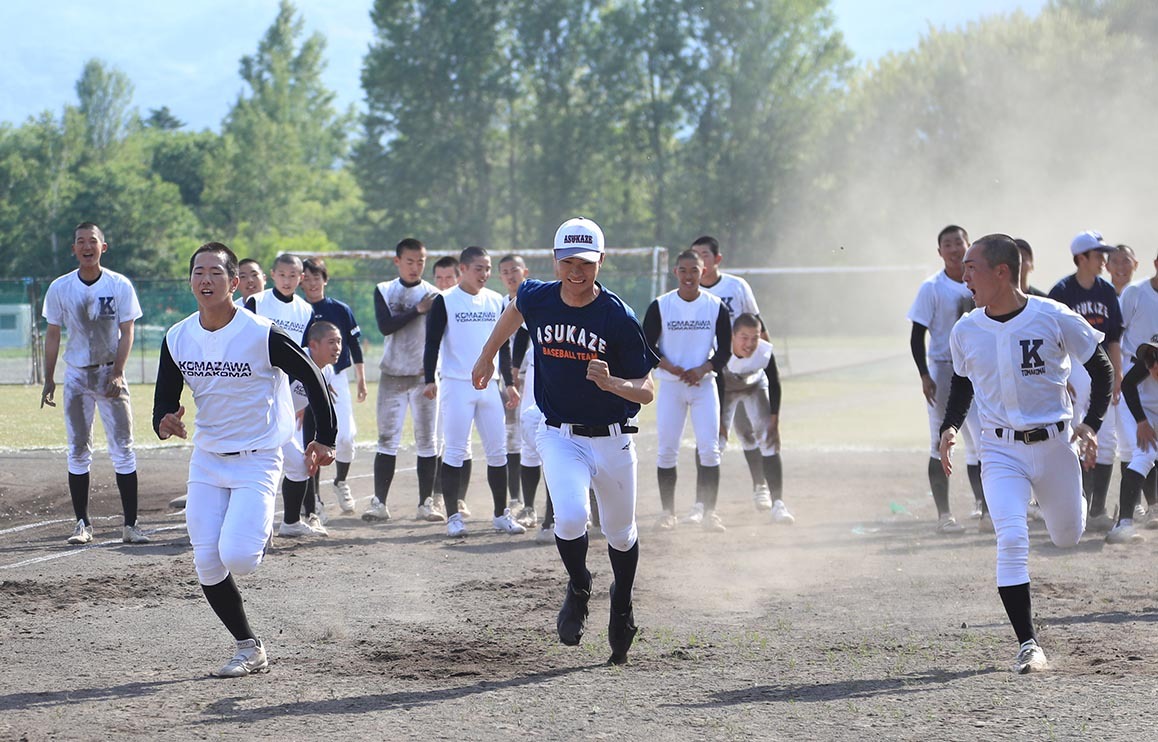 今回の合同練習は、5月に河上監督から駒大苫小牧・佐々木孝介監督(37)に合同練習を依頼して実現した。平日は河上監督と4人で練習しているグラウンドに、駒大苫小牧の主力30人が参加。連合を組む札幌北斗の5人も参加した。きびきびとした動きで効率よくどんどん進んでいく練習に圧倒されながらも必死でついていった連合のメンバー。春はエースを務めた札幌あすかぜの高田樹生投手(3年)は「駒大苫小牧さんは、みんな気迫があったし、声も出ていた。プレー一つ、一球一球に気持ちが入っていた。ぼくらも見習いたい」。短い時間ではあったが、大いに刺激を受けた。