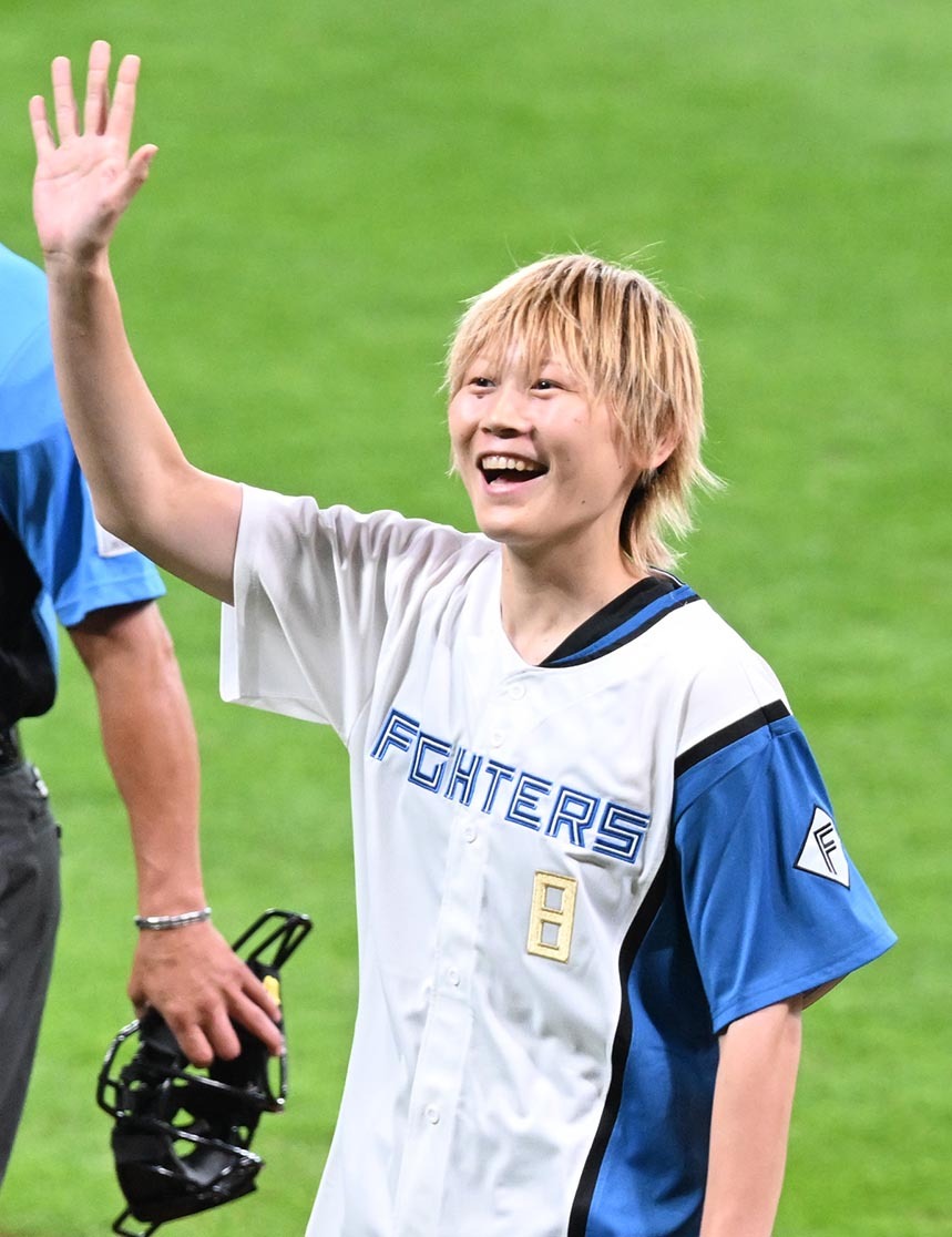 バスケットボール女子のWリーグでプレーする愛知県出身の高田真希(34、デンソーアイリス)が13日、エスコンフィールド北海道を訪れ、中日戦の始球式に臨んだ。大勢のファンが見守る中、マウンド上からストライクを投げ込み、トップアスリートの貫禄を見せつけた。